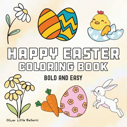 Happy Easter Coloring Book: Easter Bold and Easy Coloring Book for Adults and Kids, Simple and Big Designs for Relaxation Featuring Cute Rabbit, Chicken, Flower, And More (Bold & Easy Coloring)
