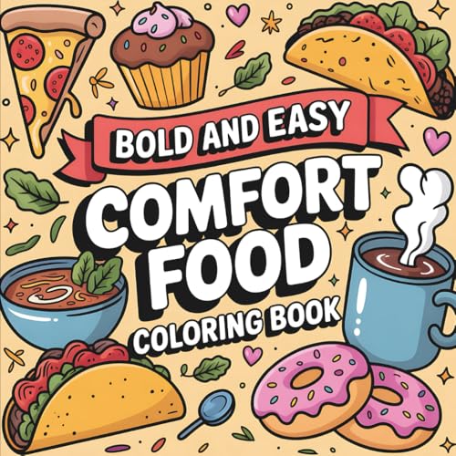 Bold & Easy Comfort Food Coloring Book: For All Ages, Bold and Easy, Simple and Big Designs for Relaxation Featuring Hotdogs, Cinnamon Rolls, Fried Chicken, and More (Bold & Easy Coloring)