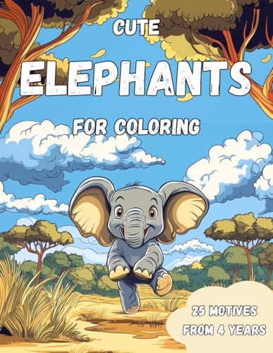 Cute Elephants for Coloring: Big ears, bigger smiles! Discover 25 pages full of lovable baby elephants waiting to be brought to life with color and creativity.