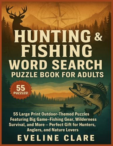 Hunting & Fishing Word Search Puzzle Book for Adults: 55 Large Print Outdoor-Themed Puzzles Featuring Big Game–Fishing Gear, Wilderness Survival, and ... Gift for Hunters, Anglers, and Nature Lovers