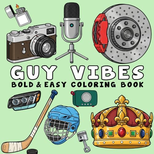 Guy Vibes Bold & Easy Coloring Book: +50 Big, Simple Designs for Men inspired by sports, technology, outdoor adventures, trucks, and More