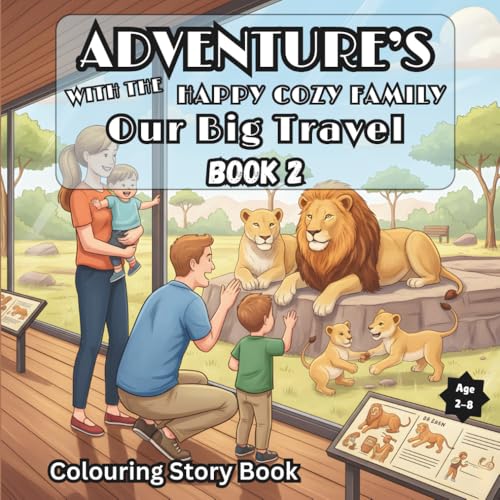 Adventures with the Happy Cozy Family: Our Big Travel Colouring Story Book For Kid's: Holiday Fun Dad, Mom, Ben and Lily - Exploring Cities, Beaches, ... by Car, Train, Plane & More For Ages 2-8