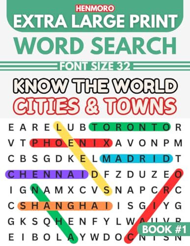 Know The World Cities & Towns: Extra Large Print Word Search Puzzles for Seniors and Adults for Less Strain on the Eyes Experience | Big and Large Font Size | 54 Countries Themed Puzzles