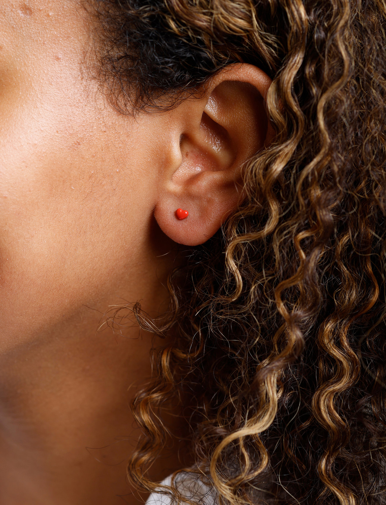 Design Letters Little Big Love Earstuds (Set Of 2 Pcs) - Goldplated - Red - L:13MM