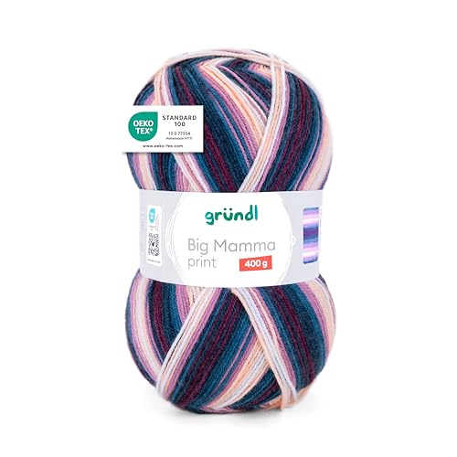 Gründl Ull Big Mamma Print – XXL ull för stickning – stor boll 400 g/1040 m – ullgradient av 100% polyakryl – syrén-petrol-purpur-persikovit