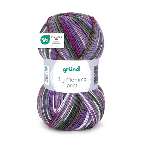 Gründl 2612-38 Big mamma print ull, akryl, violett-grangrön-vit-mossgrön lavendel, 30 x 17 x 14 cm, 400 gram