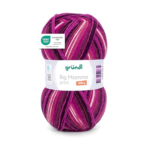 Gründl Ull Big Mamma Print – XXL ull för stickning – stor boll 400 g/1040 m – ullfärggradient av 100% polyakryl – fuchsia-hallon-bordeaux-vit