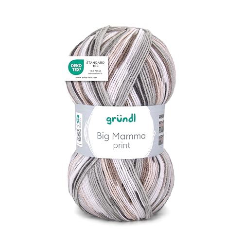 Gründl 2612-42 Big Mamma print ull, akryl, vit-grå-ljusgrå beige-sand, 30 x 17 x 14 cm, 400 gram