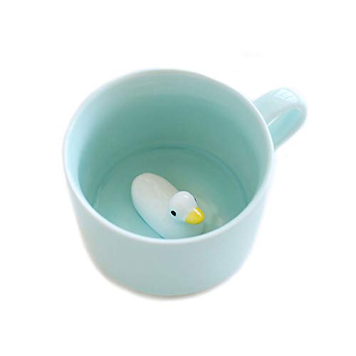Keramikmuggar för kaffe, mjölk, te, morgonkopp med 3D-djur, till morgondryck, bröllop, födelsedagar, fars dag, mamma, för flickor, kvinnor, pojkar (anka)