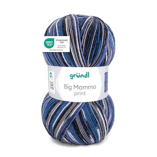 Gründl 2612-48 Big mamma print ull, akryl, jeans-azur-himmelsblå-stengrå marinblå vit, 30 x 17 x 14 cm, 400 gram