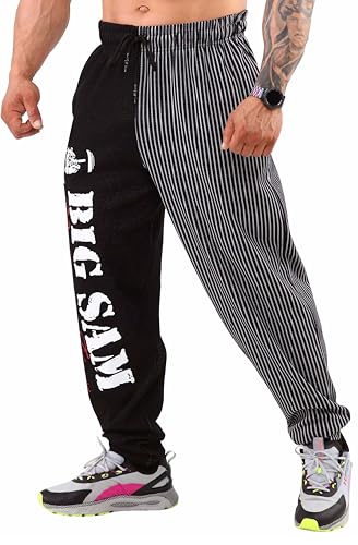 BIG SAM SPORTSWEAR COMPANY Men's Baggy Sweatpants with Pockets, Oversize Striped Oldschool Trackpants (XL, Unprinted)