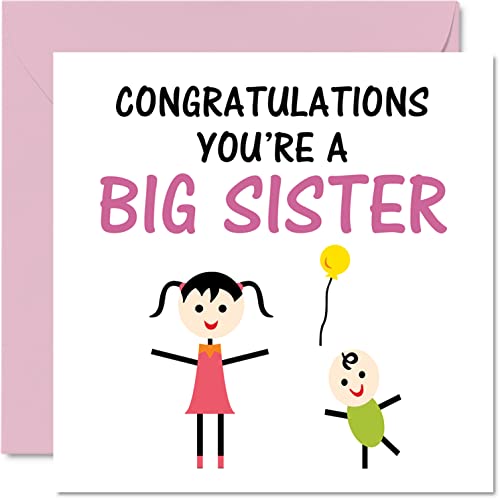 Nytt babykort – 'Congratulations You're a Big Sister New' babykort, 'Well Done' gratulerar nya babykort, välkommen till världen hemgåvor, 145 mm x 145 mm baby gratulationskort för föräldrar