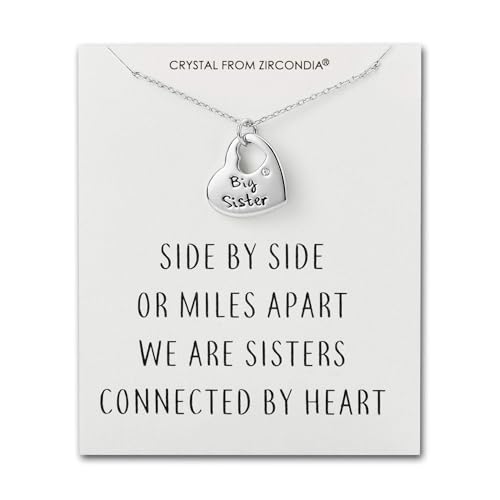 Philip Jones Big Sister hjärta halsband med citatkort skapat med Zircondia Crystals