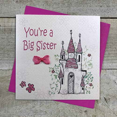 Vita bomullskort Princess Castle You're a Big Sister", handarbetade