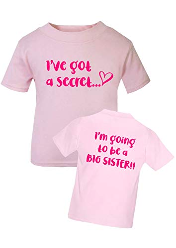 Big Sister Secret Front and Back T-shirt - Meddelande om graviditet, Ljusrosa, 5-6 År