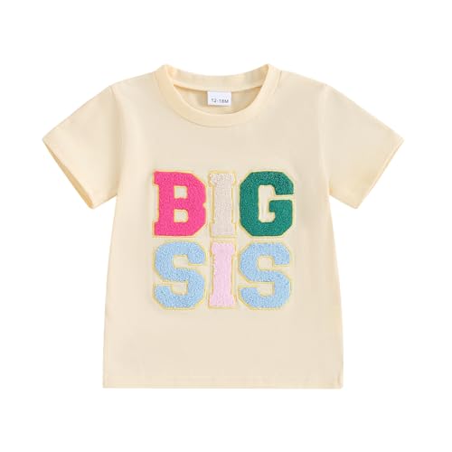 Carolilly Big Sister Little Sister Matching Färgglad Bokstav Tryck Rund hals Sweatshirt T-shirt eller Bodysuit, Aprikos stor, 2-3 Years