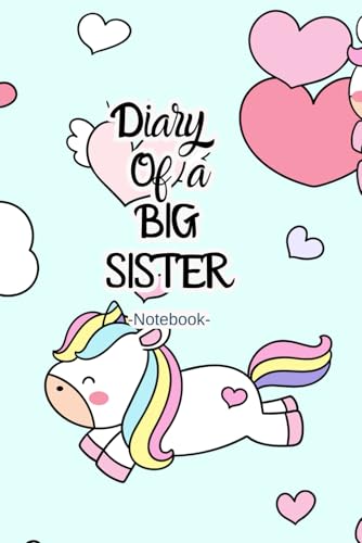 Diary of a Big Sister: Unicorn Patterned Gift Notebook for Girls: Blank 110 lined pages 6x9inch notepad