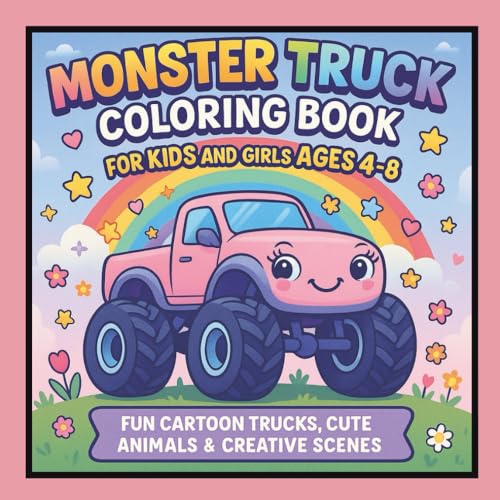 Cute Monster Truck Coloring Book for Kids: Whimsical Big Wheel Adventures with Unicorns, Rainbows, and Animals; Fun Activity Pages for Boys and Girls Ages 4-8
