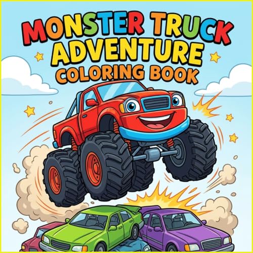Monster Truck Coloring Book for Kids Ages 4–8: Big Wheel Trucks, Easy Bold Coloring Pages & Fun Adventures for Boys and Girls