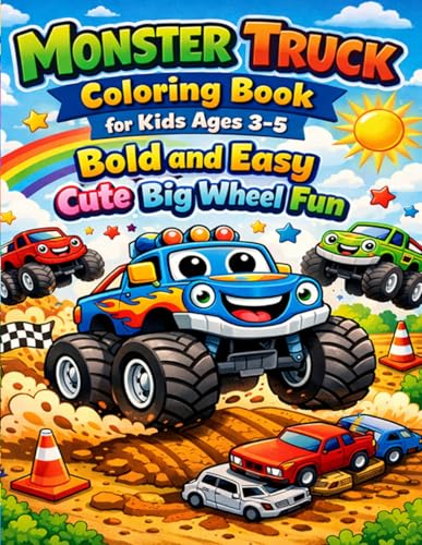 Monster Truck Coloring Book for Kids 3–5: Bold and Easy Pages with Smiling Big Wheel Vehicles, Fun Scenes and Action - An Interactive Activity Book ... to Encourage Early Learning and Creativity