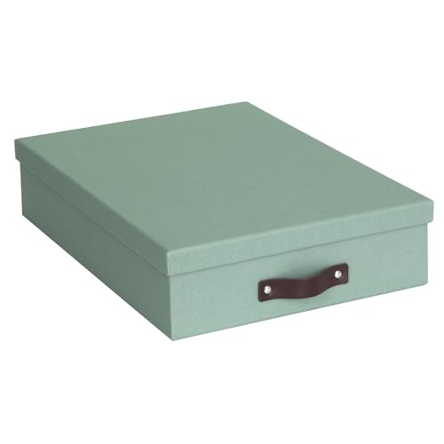 Bigso Box of Sweden OSKAR dokumentlåda för A4-papper, broschyrer etc. – skrivbordsfack med lock och handtag – förvaringslåda av fiberskiva och papper i linneutseende – mintgrön