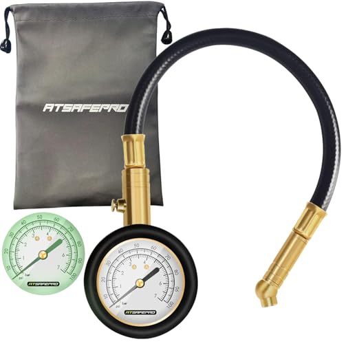 ATsafepro däcktrycksmätare 100psi 7bar exakta bildäckstrycksmätare med flexibel slang Lysande ratt Mekanisk lufttrycksmätare för Schrader Valve of Bike Motorcykel Car SUV