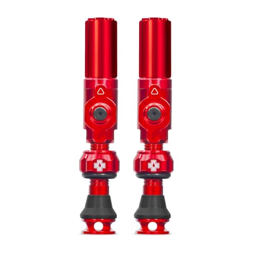 Muc-Off Big Bore Hybrid Tubeless Valves, röd 45 mm – Precision Engineered Dust Caps för cyklar med Revolutionerande Airflow-teknik – Schrader Valve Caps för Tubeless MTB/Road/Gravel Bikes