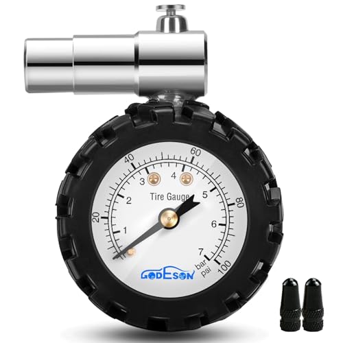 Godeson Bike Däcktrycksmätare, 100PSI/7Bar Cykeldäckstrycksmätare för Presta Valve, Cykeltillbehör Lämplig för landsvägscykel,Mekanisk Mätare,Inga batterier