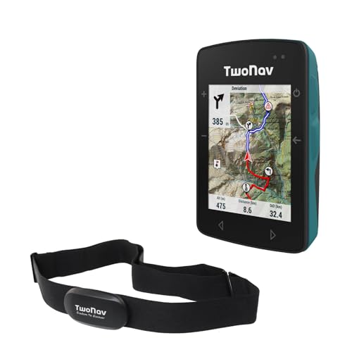 TwoNav Roc + Bröstpulsmätare, GPS-cykeldator med 2,7-tums skärm för MTB, cykling, gravel, bikepacking med kartor ingår. Färg Turkos