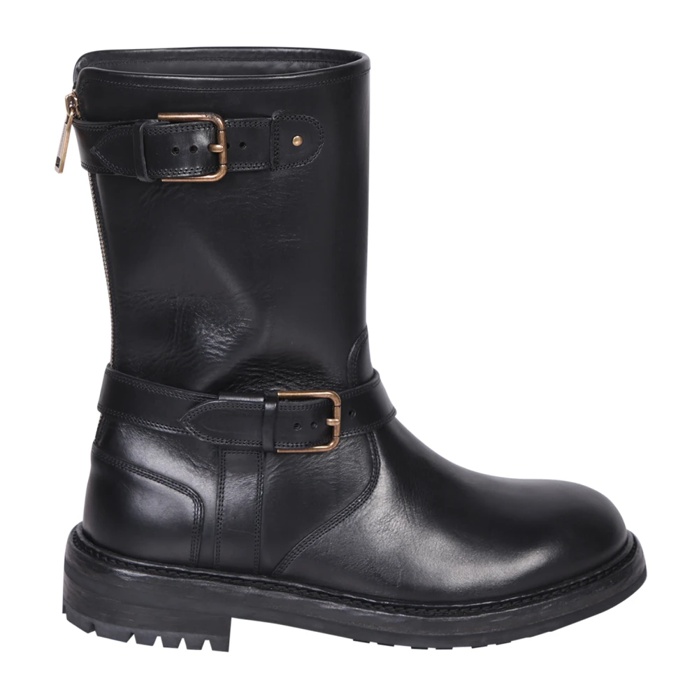 Dolce & Gabbana, Skor , Herr, 44 EU, Läder, Combat Biker Mid Calf Boots