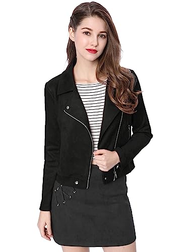 Allegra K Women's Short Soft Zip Up Faux Suede Biker Moto Jacket Small Black