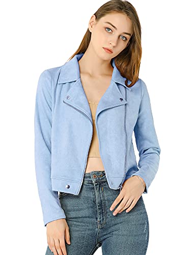 Allegra K Women's Short Soft Zip Up Faux Suede Biker Moto Jacket Medium Light Blue