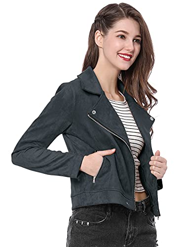 Allegra K Women's Short Soft Zip Up Faux Suede Biker Moto Jacket Large Gray