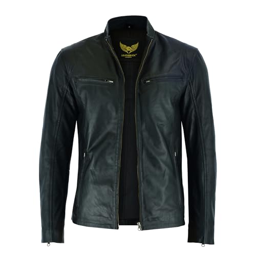 Leatherick Herr Premium Nappa Fårskinn Cafe Racer Black Biker Jacket (XL)