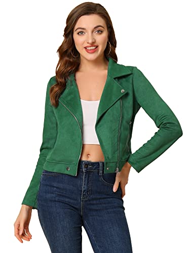 Allegra K Women's Short Soft Zip Up Faux Suede Biker Moto Jacket Small Green