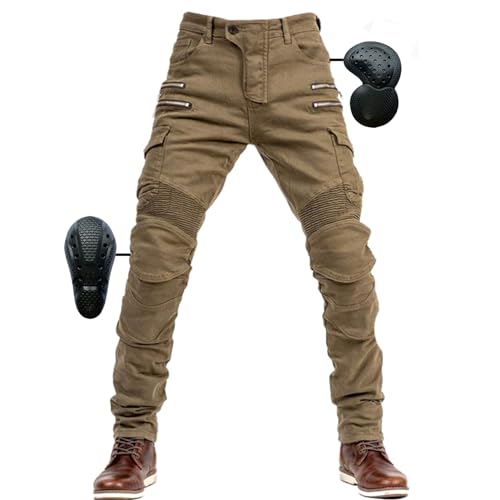 SHUOJIA Herr Motorcykelbyxor Jeans med Skydd Motorcykel Biker Pant 4 X Skyddsutrustning, khaki, L