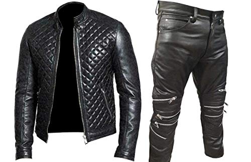 JACKETZONE Herrbyxor svarta läderbyxor | Biker läder heta byxor jeans antika, Svart - Äkta läderbyxor, XXS