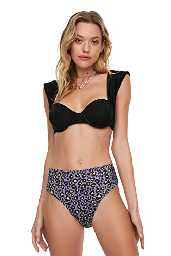 Trendyol Kvinnors färgglada leopard mönstrad hög midja bikini undersida, lila, 36
