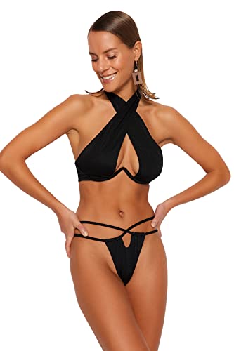 Trendyol Dam normal midja högt ben bikini underdel, Svart, 40 SE