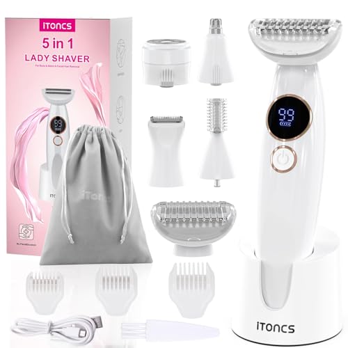 iToncs damrakapparat, 5-i-1 elektrisk intim rakapparat för kvinnor, IPX7 vattentät damrakapparat, smärtfri våt- och torrrakapparat för bikini, armhålor, ben, ögonbryn och näsa, USB-laddningsstati