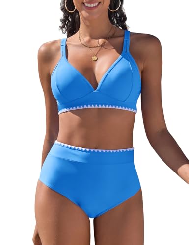 Yutdeng Bikini för kvinnor sexig triangel bikini för kvinnor set push-up bikinis för kvinnor v-ringad tvådelad baddräkt magkontroll hög midja baddräkter nackhållare badkläder färgblock baddräkt