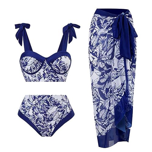 GORGLITTER Bikini för kvinnor push-up bikini med bygelset baddräkt med tropiskt mönster sjal bikini set tvådelad baddräkt badkläder, Grön, L