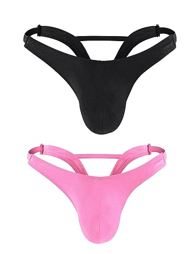 Oludkeph Men's Lingerie Pouch Thong Underwear Bikini Brief Underwear Bulge Pouch Low Rise Shorts Panty (Black Pink)
