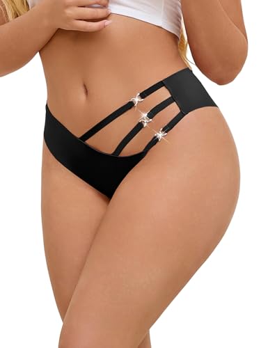 ohyeahlady Sömlös Stringtrosa Kvinnor med Strass Plus Size Brasilianska Andningsbara G-String Låg Midja Stretch Trosor Osynlig Elastisk Tråd Bikini Thong Underwear, Svart, XXL