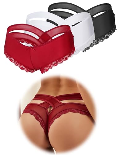ohmydear Trosor dam 1/2/3/4-pack trosor sexig, låg midja string stringtrosor, spets bikini underkläder, sexiga underkläder för kvinnor, mesh, andas underkläder, XL-XXL