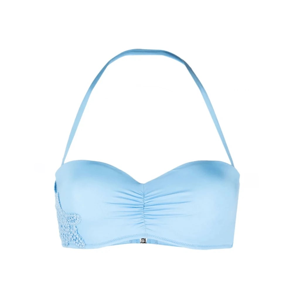 Ermanno Scervino, Underkläder , Dam, M, Läder, Blå Bandeau Bikiniöverdel med Rynk