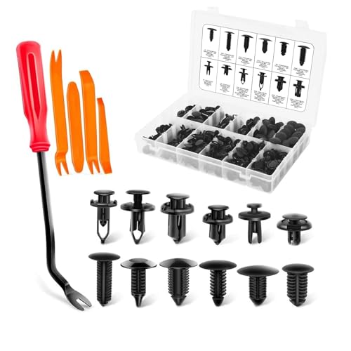 ROSYLEVE Bilfästklämmor set 12 typer av dörrbeklädnad klämmor universal bil dörrbeklädnad clips bilverktyg med demonteringsverktyg för alla fordon VW Benz BMW