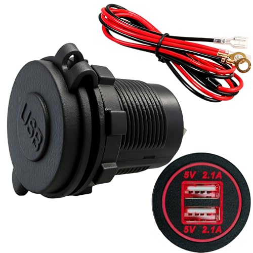 USB-laddningsuttag, Dujelixa Dual 5 V/2,1 A USB röd bländare vattentät 12 v eluttag, USB-billaddare med 60 cm trådsäkring för 12 V/24 V bil, motorcykel, RV, båt, yacht (1 st)