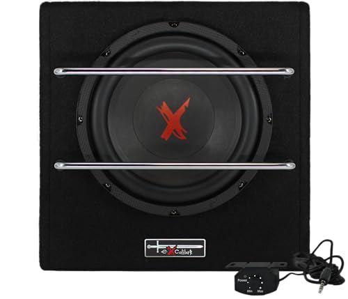 Excalibur X801BA 20 cm 1100 W aktiv subwoofer för bil med inbyggd klass AB-förstärkare, basreflexhölje, inkluderar fjärrkontroll och monteringsfästen, kompakt design