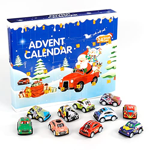 Adventskalender med små leksaksbilar, 24 stycken pull-back-bilar, nedräkningspresent inför jul, julkalender med bilar, julklapp för barn